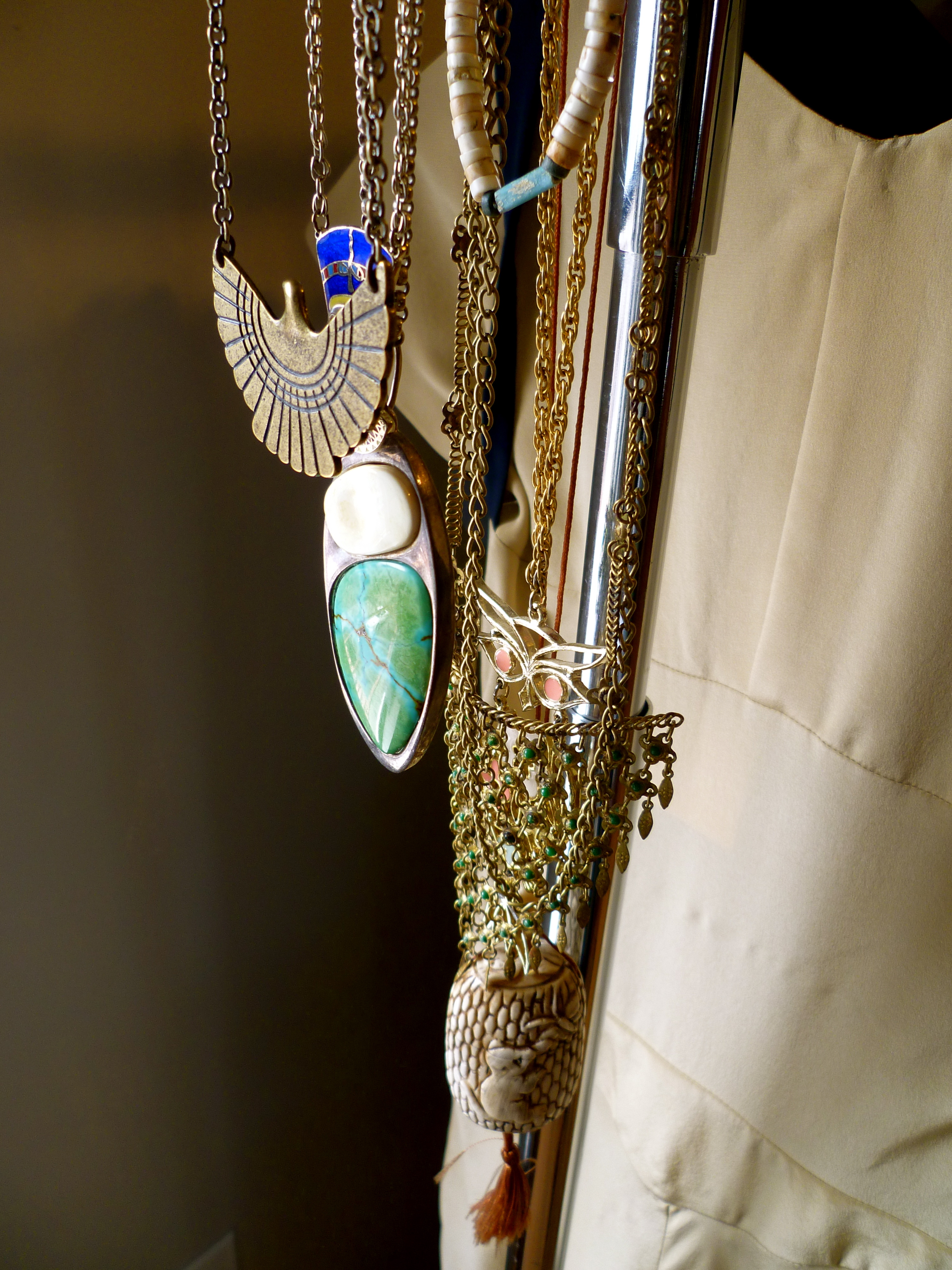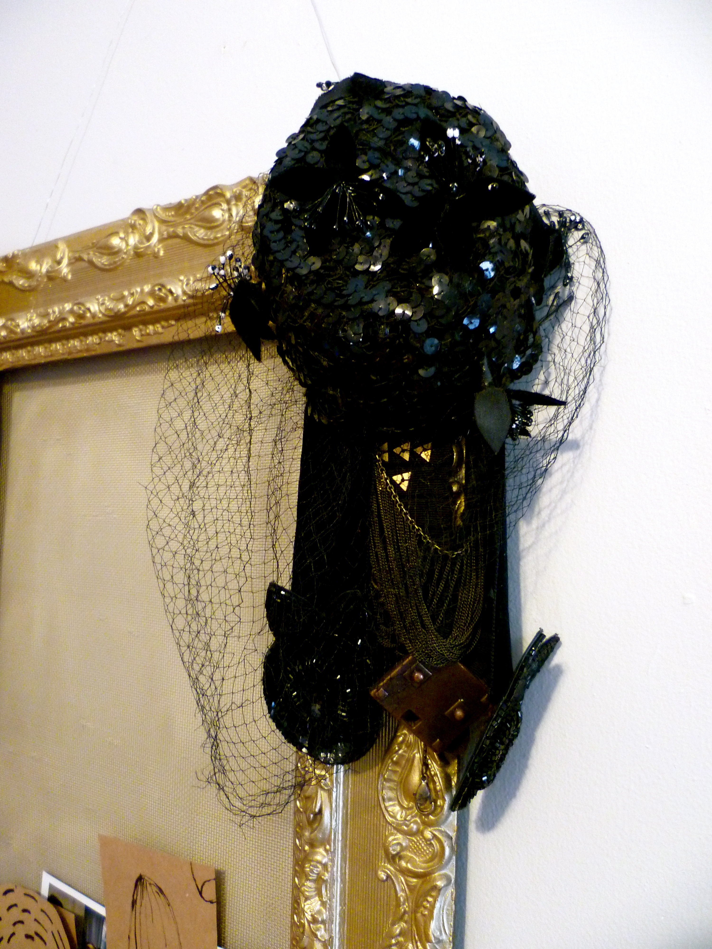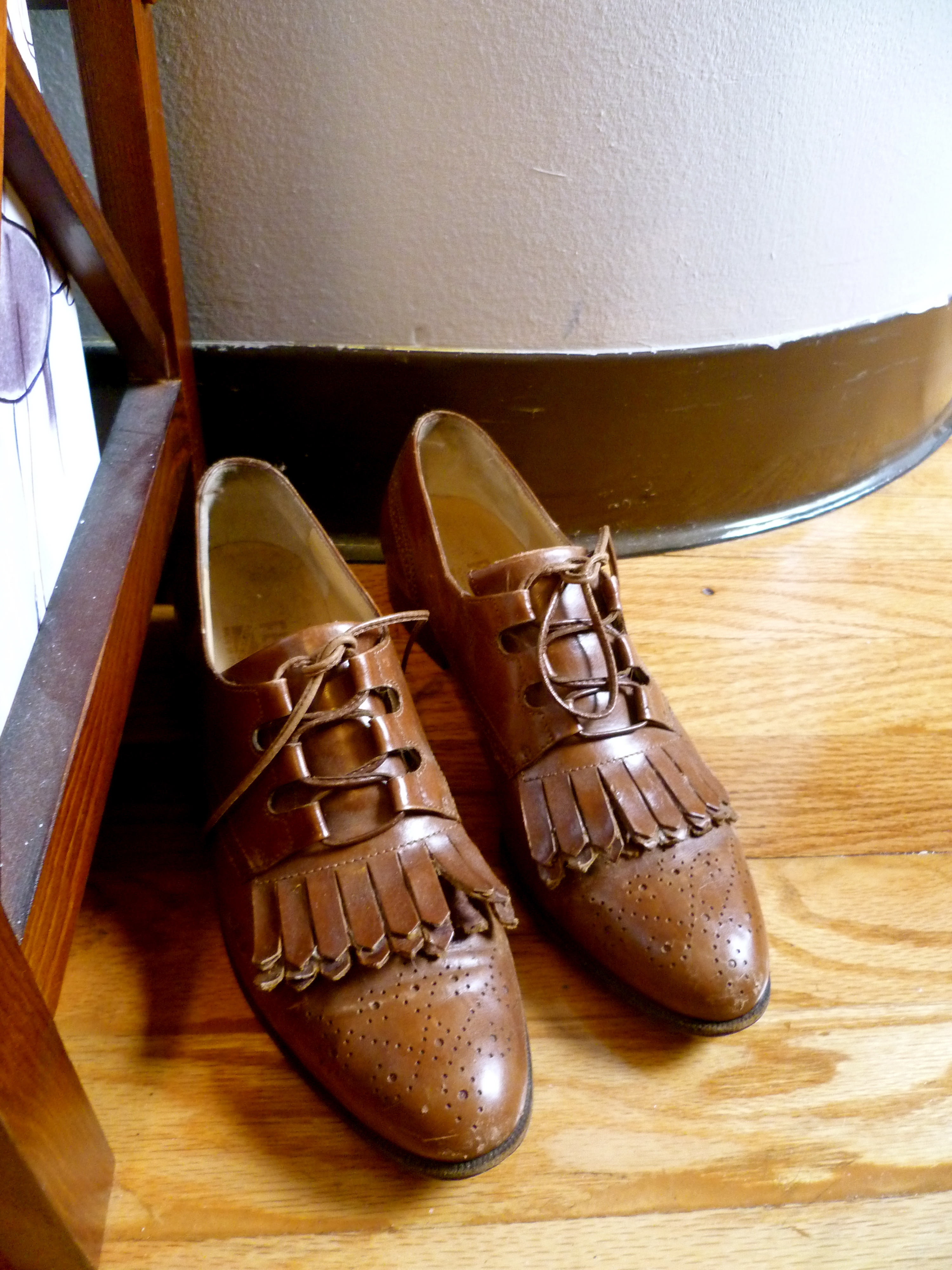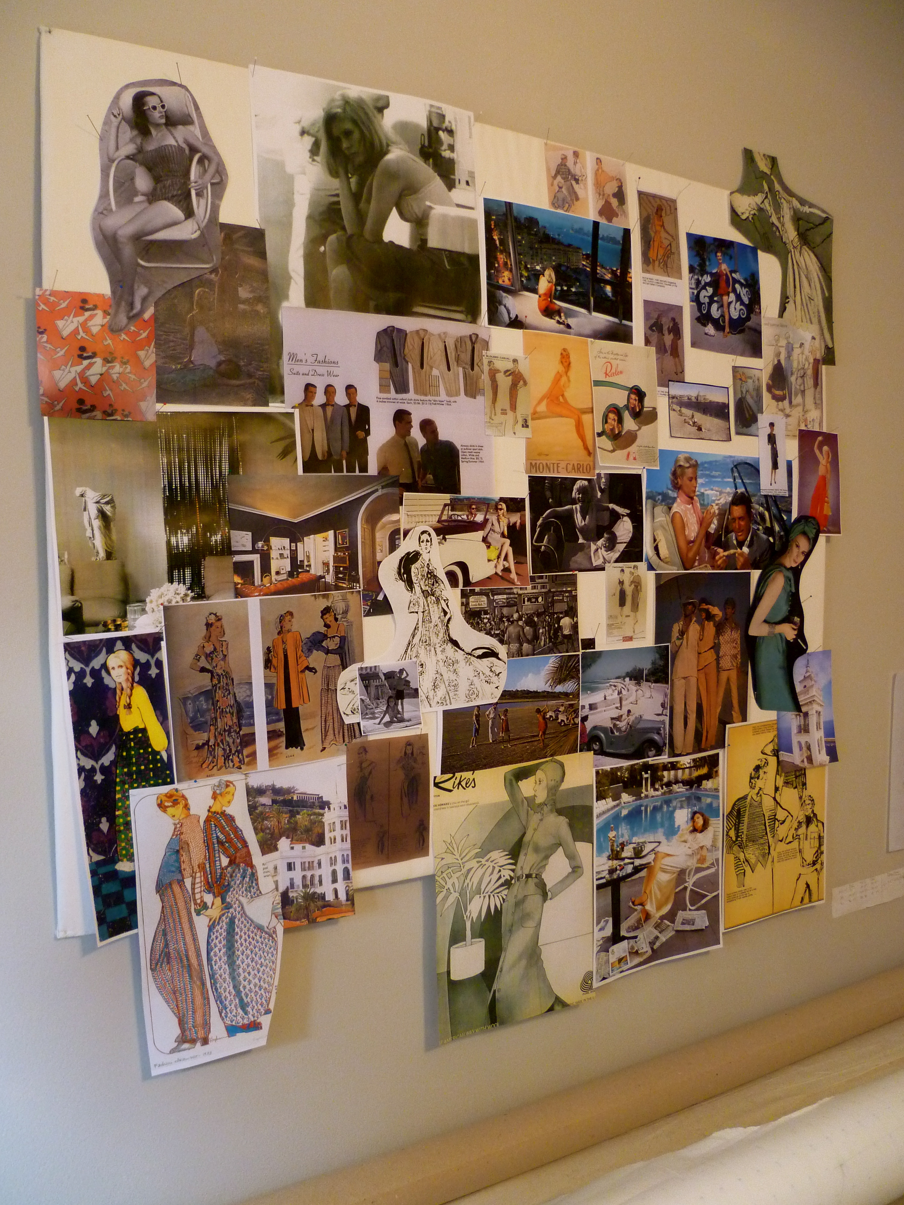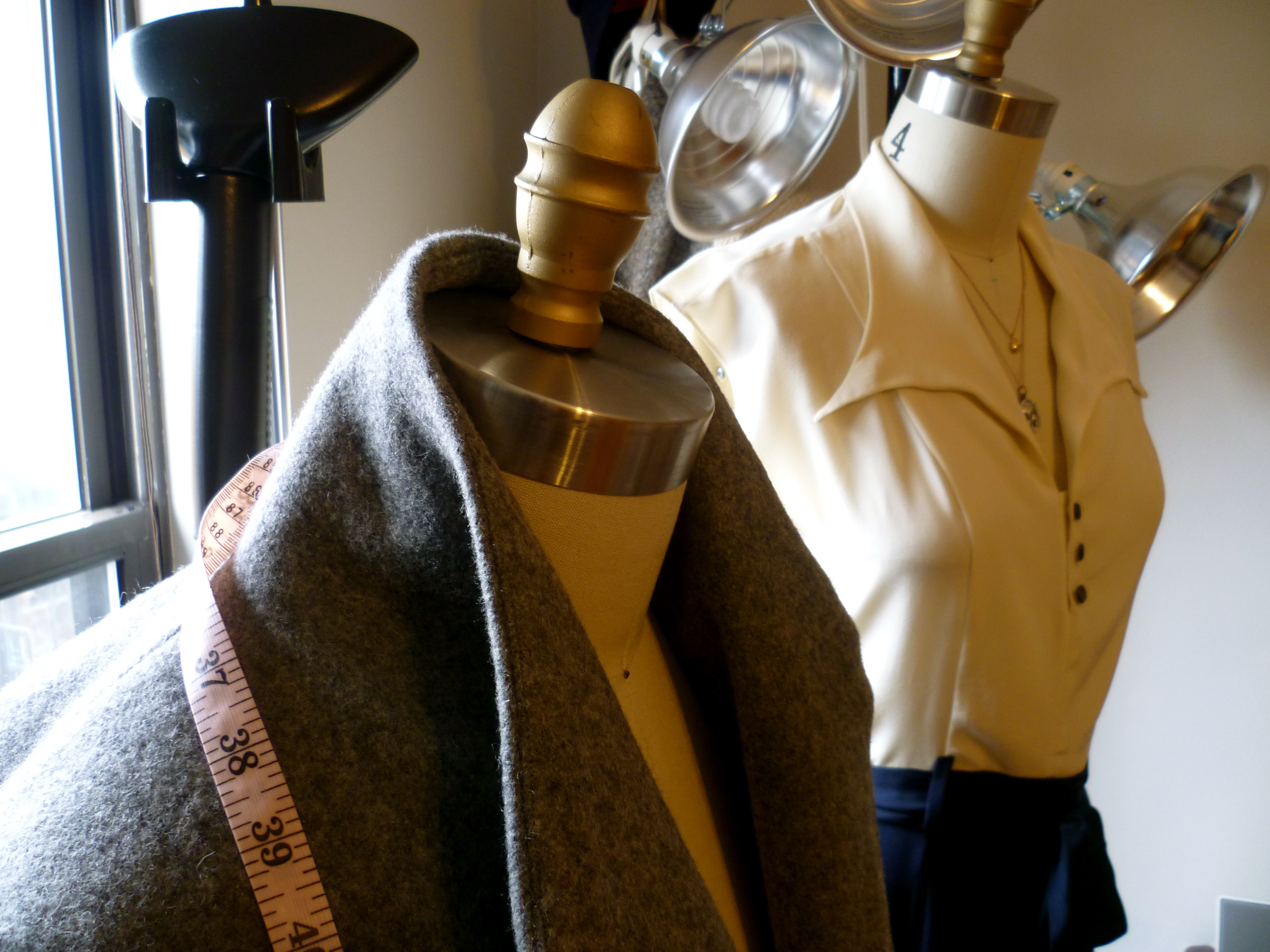 Sarah’s atelier is a jewel-box of vintage inspiration, from the beautifully dense wall collages she creates at the beginning of each season’s design process, to the vintage Ferragamos tucked in the corners (amazing scores from the nearby Brooklyn Flea). We found that we had a bit of a common background in theatre arts, loved some of the same classic films and exchanged notes on the best places to hunt for photographs of bygone eras.