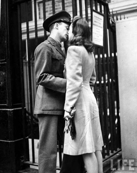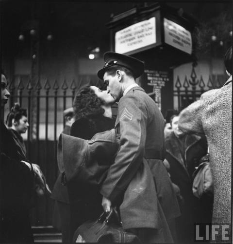 Searching the LIFE Archives with Memorial Day at the front of my mind, I discovered these poignant images taken by LIFE photographer Alfred Eisenstaedt. Taken in 1943 and 1944 at the original Penn Station, these photographs capture servicemen saying goodbye to their wives, girlfriends and lady friends prior to shipping off for WWII. These kisses were meant to last until that happy day of reunion, but for some, they were destined to be a final farewell.