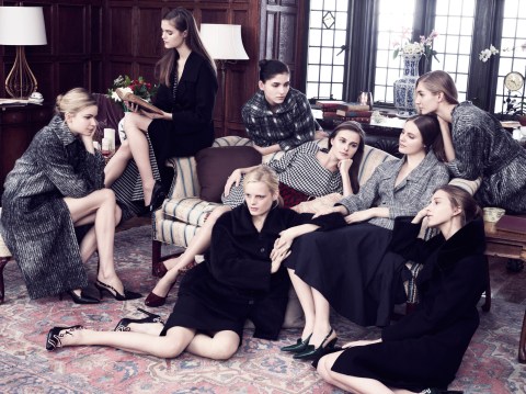 For Jil Sander, designer Raf Simons has honored the collegiate woman. Not content to merely reproduce — the quagmire that menswear frequently finds itself mired in — Simons’s reinvention of familiar forms is refreshing and startlingly well-executed, especially in the case of outerwear. The presentation of the designs in a campaign that echoes Hayashida’s photographs, in group portraits that recall sororities and ladies’ clubs, is a stroke of genius and I couldn’t resist pulling up a few real ones. You know me.