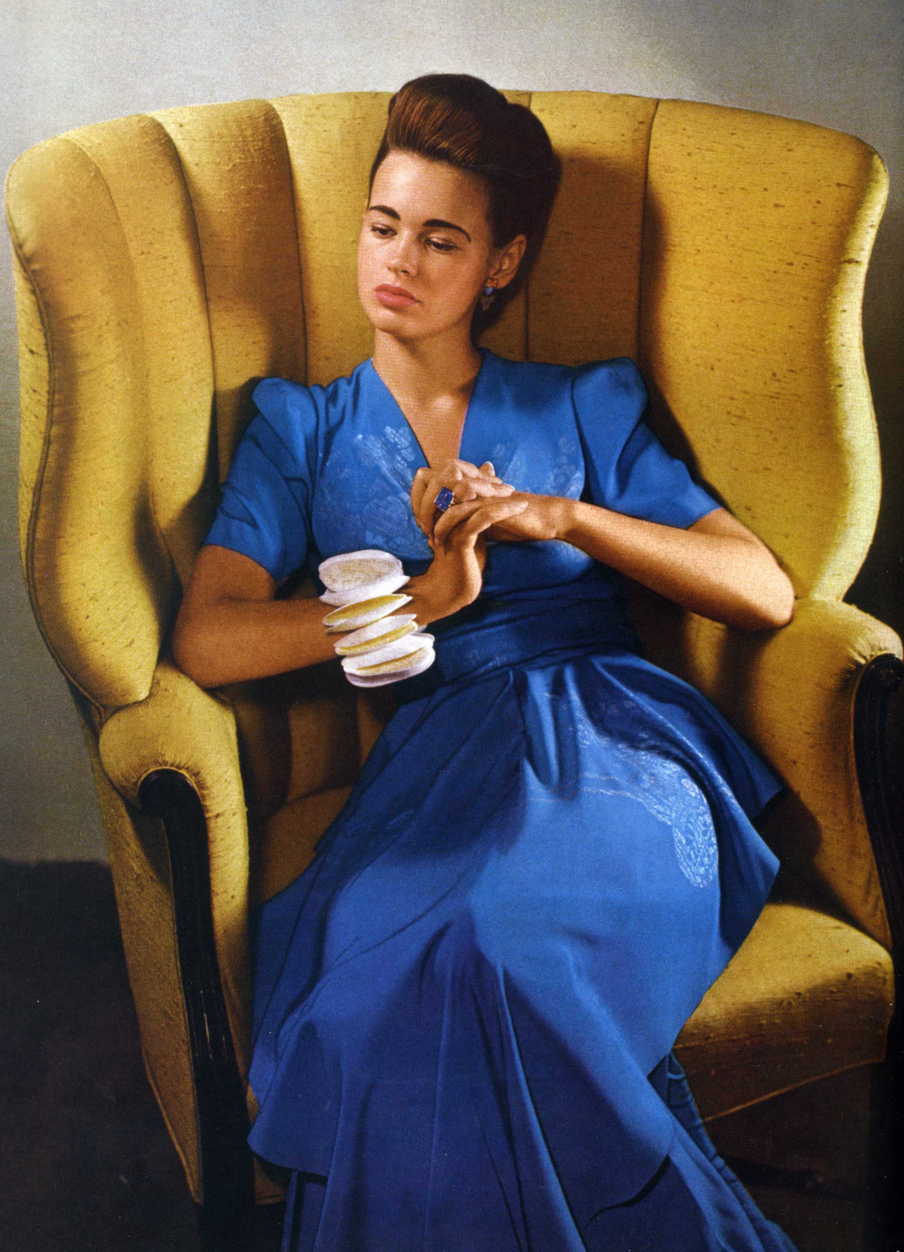 Fifteen year-old Gloria appearing in Harper’s Bazaar for the first time in 1940, at the request of then fashion editor Diana Vreeland, who met Gloria at Gertrude’s home at Old Westbury.