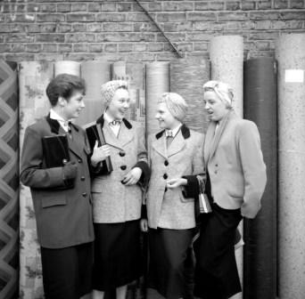 The teddy girls left school at 14 or 15, worked in factories or offices, and spent their free time buying or making their trademark clothes – pencil skirts, rolled-up jeans, flat shoes, tailored jackets with velvet collars, coolie hats and long, elegant clutch bags. It was head-turning, fastidious dressing, taken from the fashion houses of the time, which had launched haute-couture clothing lines recalling the Edwardian era. Soon the fashion had leapt across the class barrier, and young working-class men and women in London picked up the trend.